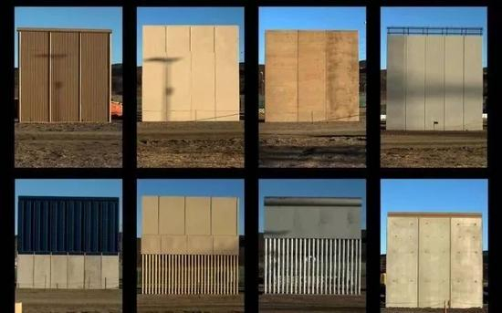 美联社报道,经过1个月的施工,由6家建筑企业设计的8堵“样板墙”亮相加利福尼亚州圣迭戈市。每堵“样板墙”墙体宽度和高度均达30英尺(9米)左右。其中4堵用混凝土建造,坚固封闭,其余“样板墙”则使用不同的“替代材料”。