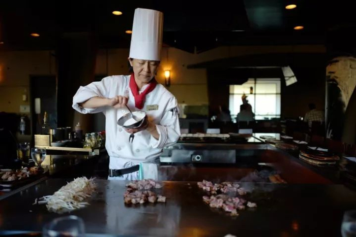 2017年7月28日,惠斯勒山脚下的Teppan村日式牛排馆,一位来自日本的铁板烧大厨正在烤制牛排。图/何雄飞/新周刊