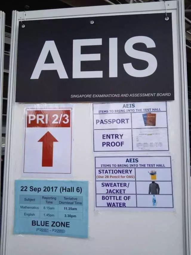 新加坡博览中心AEIS考场外的提示。