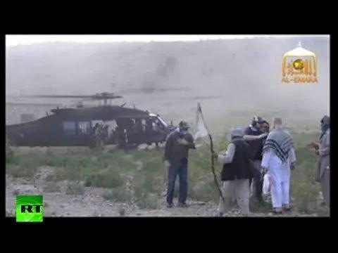 ▲资料图片:2014年5月31日,塔利班向美方交还伯格达尔,视频中可见美军直升机。