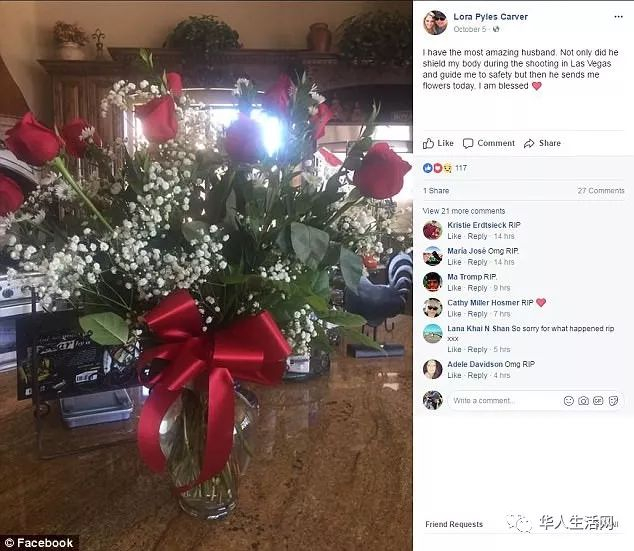 “拉斯维加斯后,他(爸爸)想给妈妈一个微笑。”布鲁克说,“我发誓,他们(爸妈)在他们生命中最后的两周比过去20多年都恩爱。”的确,收到玫瑰花的洛林在脸书上分享了这束艳丽的花朵,并留言:“我拥有一个超级棒的丈夫。他不仅在拉斯维加斯的时候,用身体遮挡我的身体,带我到安全地带,他今天还送我鲜花。我是被祝福的。”