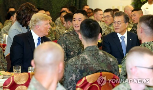 韩媒报道,文在寅7日中午直接从首尔前往汉弗莱营,迎候特朗普。文在寅此前说,到汉弗莱营破格迎接特朗普旨在彰显韩美同盟的牢不可破,被视为对朝释放韩美将严惩一切挑衅的信号。在汉弗莱营与特朗普见面后,两人与韩美两国官兵闭门共进午餐。