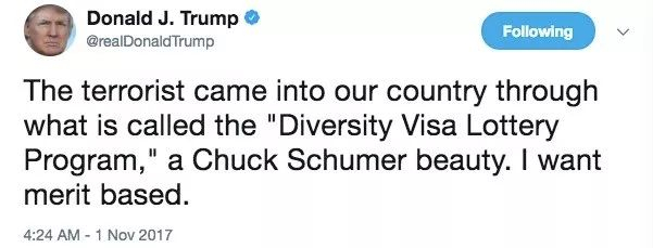 为啥纽约卡车撞人事件发生不到几个小时,特朗普马上利用这件事攻击政敌,大谈他的移民政策?