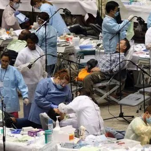 在免费的内科、牙科和眼科诊所里工作的医护人员必须“观察”病人,并迅速评估。