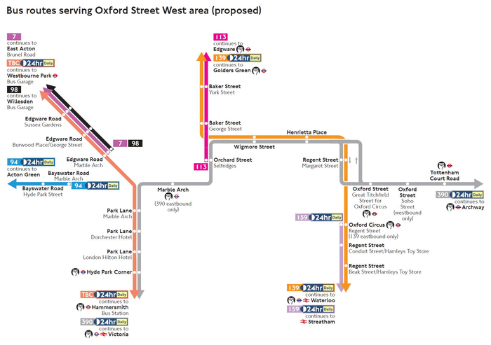 整改之后,牛津街一带的大巴服务路线如下(初稿)~