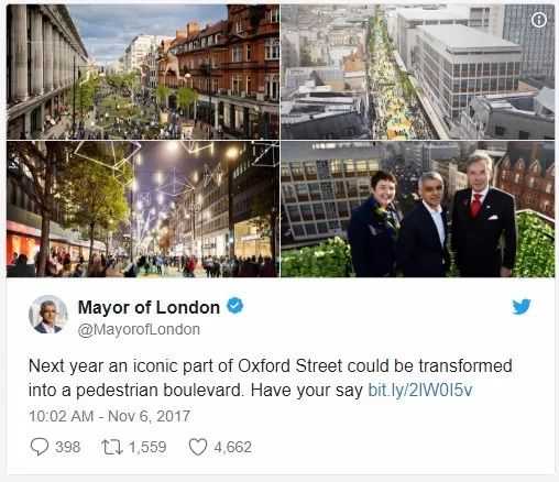 市长发推:就在明年!牛津街最高大上的部分要变步行街了~~