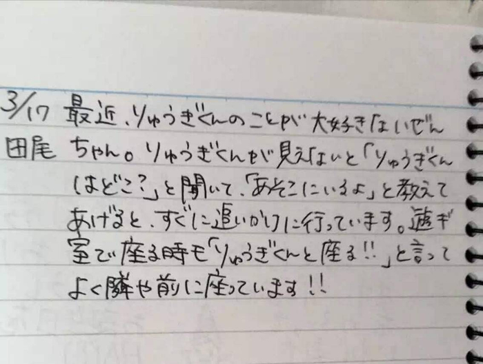 家长还可以在手册上留言,向老师咨询孩子在保育园的表现以及照看孩子的诀窍等相关问题。