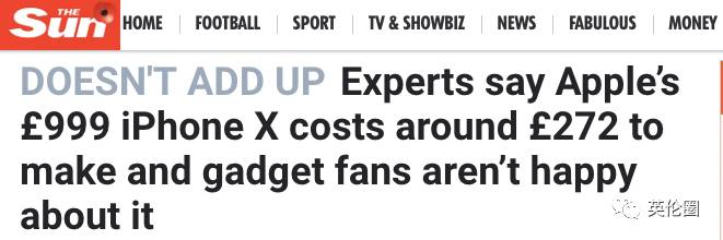专家爆料,苹果售价999镑的iPhone X,实际唱本只有272镑?粉丝们怒了!