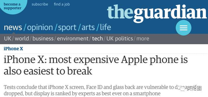 卫报就iPhone X碎屏的问题出了一篇报道▼