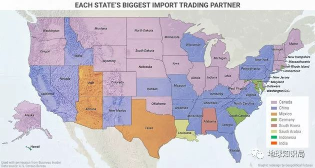 美国各州最大的进口伙伴国家