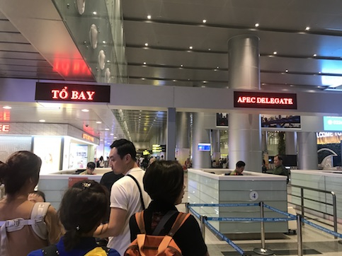 关注特朗普亚太行,从北京追到了岘港。我是在11月11日凌晨1点到达岘港国际机场的,比前来参加APEC峰会的特朗普晚了半天时间。但从北京首都机场二号航站楼出发就感觉到非同寻常,北京机场出京海关安检无比之严,排在我前面的外国哥们几次吐出舌头,无奈微笑。这趟从北京出发的东航直飞航班机舱里只载有43位旅客,大概是我乘坐国际航班以来,所见乘客最少的一次。