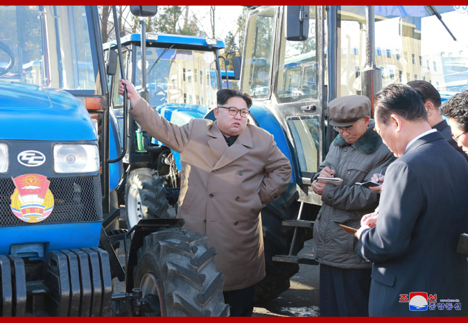 金正恩说,金日成同志34次、金正日同志10次视察了工厂。仅从这一点,就可以知道金日成同志和金正日同志为了加强和发展主体的拖拉机工业倾注的不朽领导业绩。