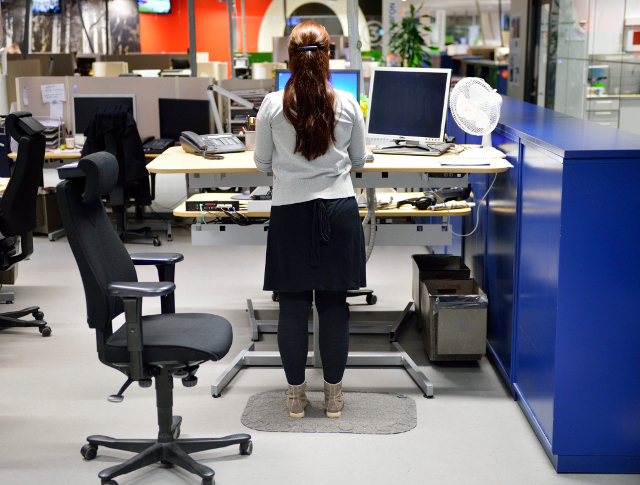 在瑞典,站着办公已经司空见惯。 很少有办公室没有配备有升降功能的办公桌。 它的健康益处是显而易见的,长时间坐着办公会缩短人的寿命。 你以前可能喜欢那种大的办公桌和皮椅,或者一个人一格的工作间。那么,你现在需要改变!站立办公,对你的身体负责同时可以更好的完成工作。
