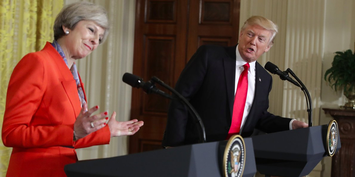 撒切尔离开唐宁街后,之后的几任政府虽然延续了英美两国的特殊关系,但却逐渐丧失了话语权,沦为应声附和的小兄弟角色。尤其是布莱尔政府追随小布什,将英国拖入毫无国际道义的伊拉克战争,更是点燃了民众的怒火。而特雷莎·梅的上台,给很多人带来一丝希望,在新任女首相的带领下,英美关系或许可以复盘回撒切尔与里根的时代。毕竟,和撒切尔成为里根上任后首位获邀到访白宫的外国领袖一样,特朗普在上任第一周便邀请特蕾莎访美,两人在白宫亲密牵手的画面则被全世界媒体记录了下来。在随后的新闻发布会上,特朗普也承诺,将继续加强英美两国间的亲密关系。