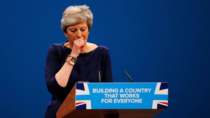 在上个月举行的保守党年会上,特雷莎在演讲中提到,“我们(保守党)没有取得预想的胜利。因为我们在大选中还有不足。我愿意对此承担责任,是我提出了提前大选,我十分抱歉。”整个演讲过程几次因特雷莎咳嗽和忘词被打断,场下还有陌生人闯入闹场,整个场面混乱不堪。当天,已经走跌多时的英镑则因首相的不佳表现再度跳水,表现出了外界对特雷莎的不信任。事实是,约30名下议院议员已经开始酝酿发起对特雷莎·梅的不信任议案。