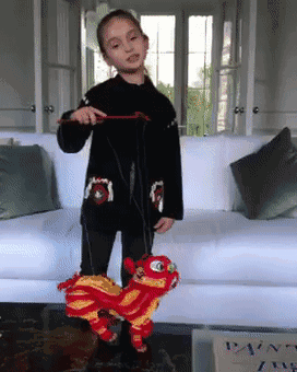 最后送上新年祝福。她一边玩舞狮灯笼,一边用中文唱《新年好》的视频。还给观众送上飞吻,并鞠躬致谢。
