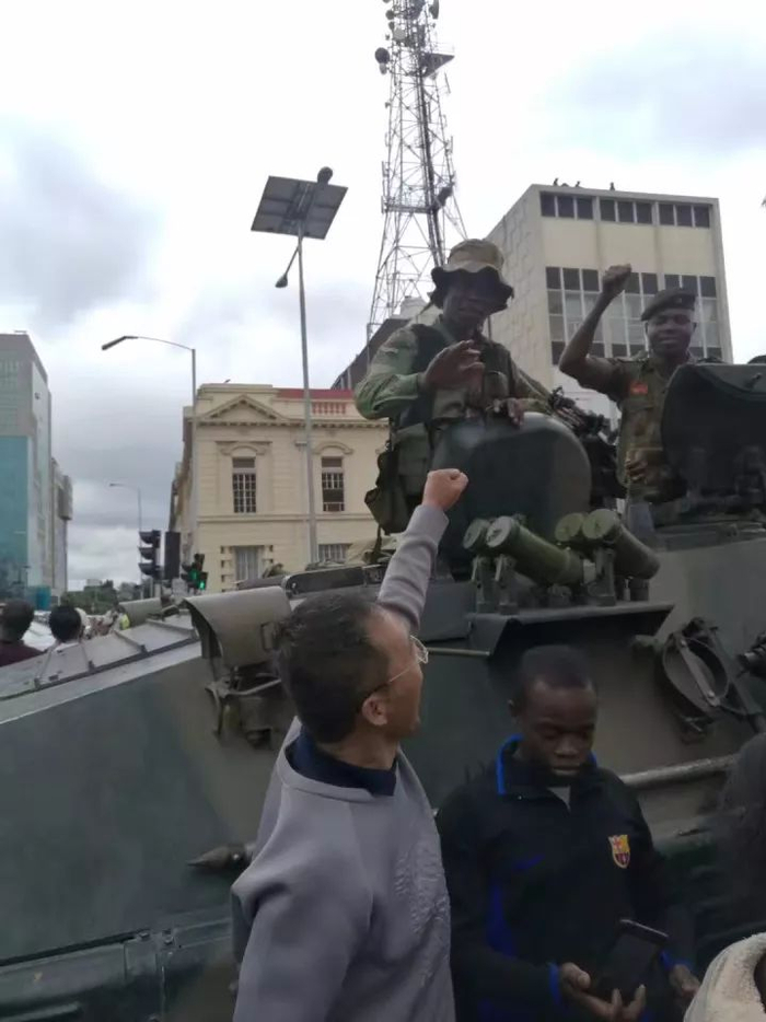 对于这一重大政治变故,很多人本来担心,会不会来一场大规模流血事件,这在非洲其实也屡见不鲜。但很幸运地是,变故和平进行,民众似乎也支持军队的决定,游行中更多场景,成了“军民合家欢”!