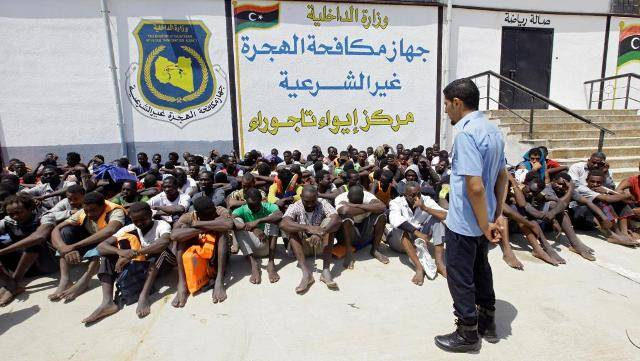 利比亚的黎波里一所非法移民拘留所,他们将被遣送回原籍国。