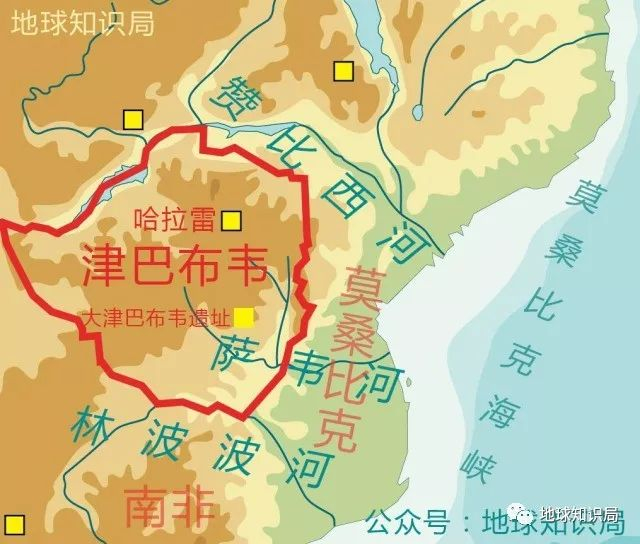 即使是历史上控制津巴布韦地区的古王国马蓬古布韦王国,对山东侧的控制力也很弱。他们只能将首都定在山区南侧的中心位置,沿连接两国的萨韦河东进。这个古首都,也就是津巴布韦著名的大津巴布韦遗址所在。