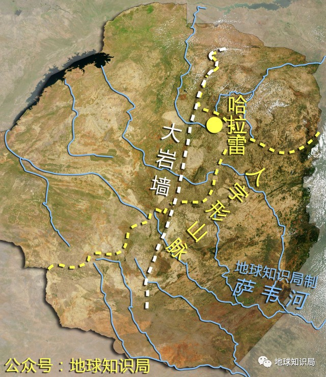 更糟糕的是,西侧的高原上还有一道著名的大岩墙(Great Dyke),把高原地形又一分为二。本就是一个小国,还被地形分裂得支离破碎,津巴布韦的经济整合能力和统一性天然就有巨大缺陷。