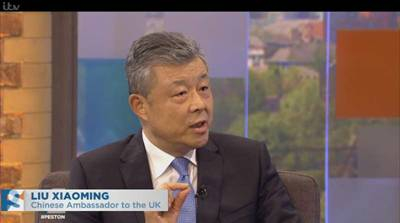 11月19日,驻英国大使刘晓明接受了英国独立电视台“佩斯顿星期日访谈”(ITV‘s Peston on Sunday)节目的直播专访。