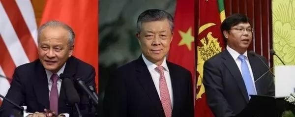 从左起分别为:中国驻美国大使崔天凯、中国驻英国大使刘晓明、中国驻斯里兰卡大使易先良。