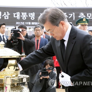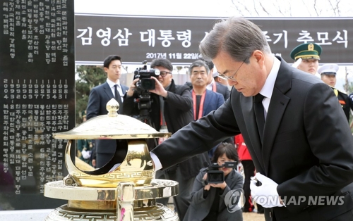 当天,文在寅来到位于首尔的韩国国家公墓,悼念韩国前总统金泳三逝世两周年。在致悼词中,文在寅表示,他不能忘记金泳三作为韩国历史上第一个非军方出身的总统是如何团结韩国人民、带领韩国发展的。