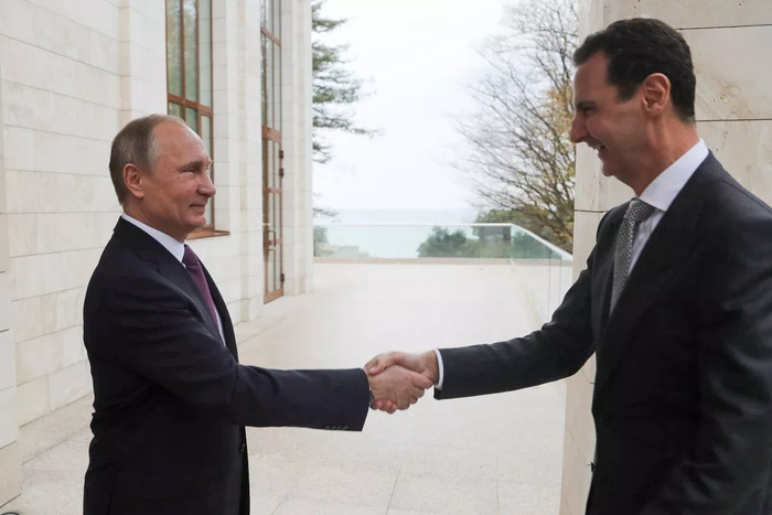 11月20日,在俄罗斯索契,俄罗斯总统普京(左)与叙利亚总统阿萨德握手。新华社/美联