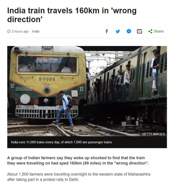 不过,印度铁路公司这份声明说的是真的嘛?连BBC都有点怀疑了,因为这已经不是印度火车第一次开错地方了!!
