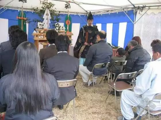 另外值得一提的是,房屋家人在住宅地基的四角进行抛洒活动。抛洒什么呢,一般有米,酒,盐等。因为日本人坚信撒盐可以辟邪,所以撒盐居多。