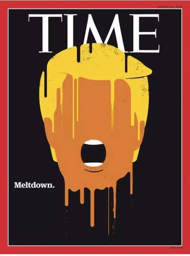有些甚至是极尽挖苦之能事。比如,2016年8月22日的封面,特朗普被描绘成一支正在融化的冰棒,文字是融化(Meltdown),一语双关,嘲讽他正在垮台,选不上总统!