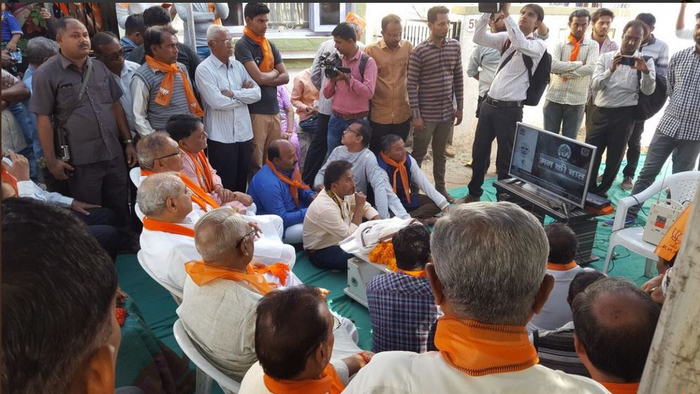 周日当天,观众围坐在一起,听取了莫迪的广播直播节目。