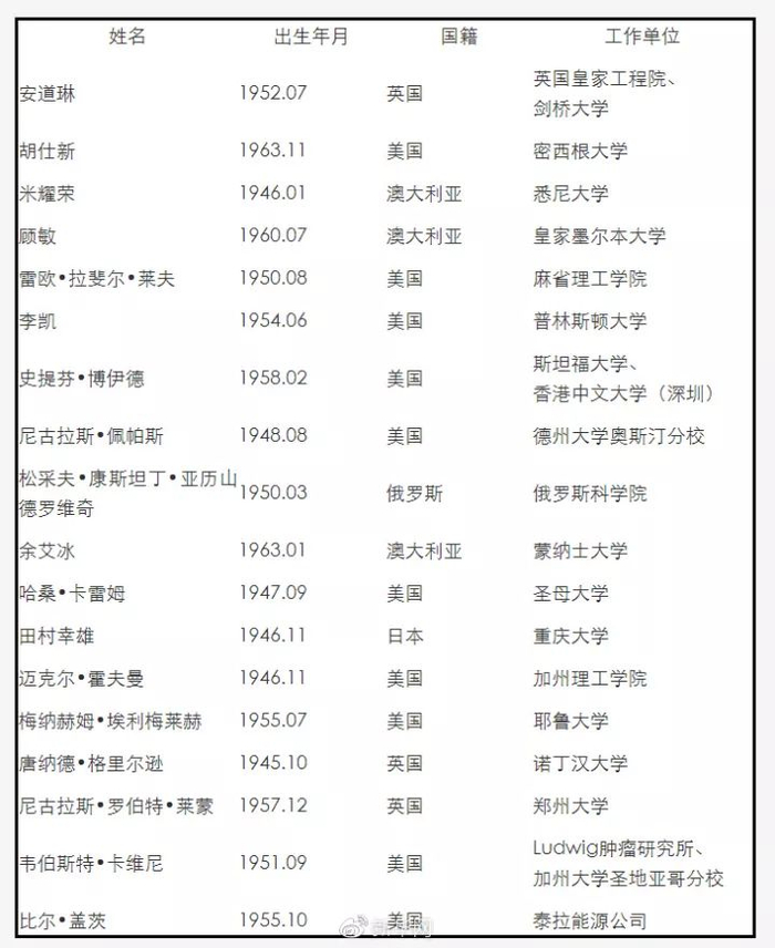 ▲中国工程院2017年当选外籍院士名单。图/新华社