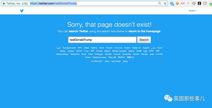 推特的网友们像往常一样点击川普账号的时候,突然发现——页面不存在!