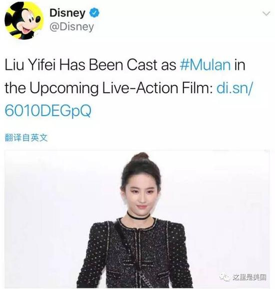 “刘亦菲,为你开心!欢迎你来到迪士尼大家庭!”