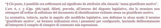 文章原文链接: http://www.dippol.it/home/domande-e-risposte/31-generale/108-i-motivi-che-giustificano-lomessa-esibizione-di-documenti-da-parte-dello-straniero