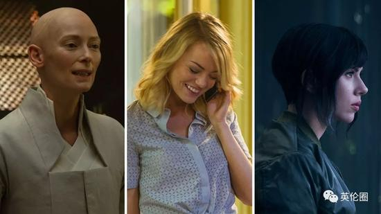 蒂尔达·斯文顿在《奇异博士》中出演的“古一”、石头姐的Allison Ng和寡姐演的“素子”,都是今年好莱坞“洗白”争议的枪靶子。(图片来自好莱坞报道者)