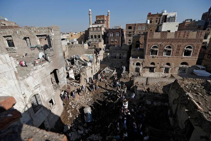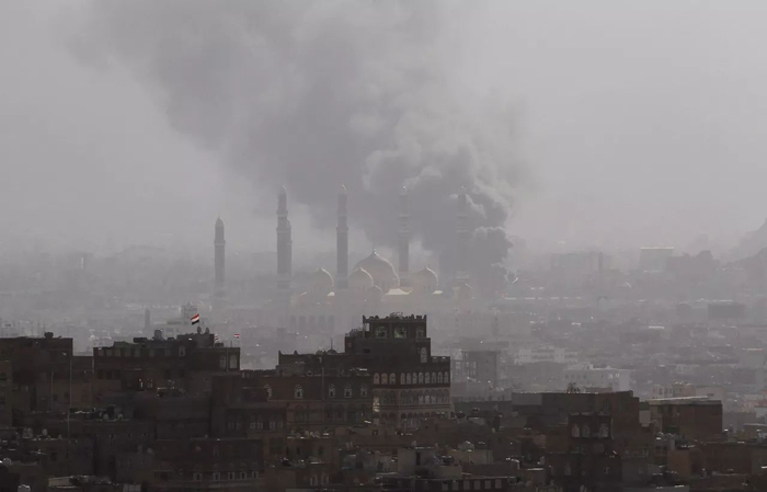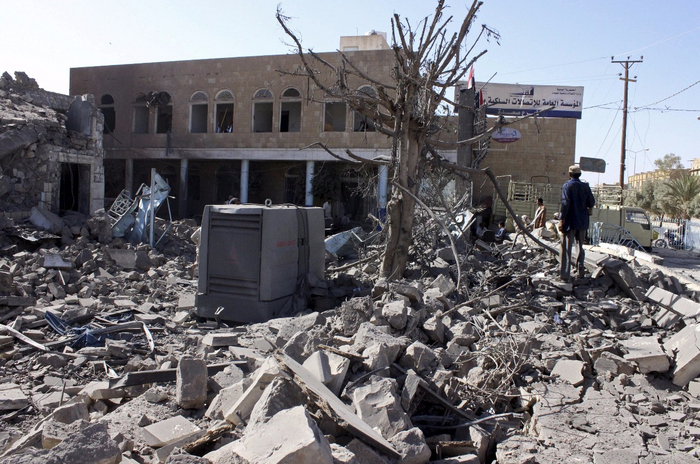 图为空袭后的萨那