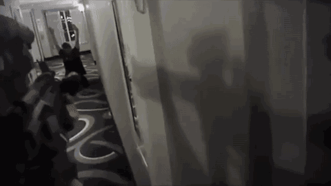警察是在走廊里遇到丹尼尔和女子(另1位被邀请的人当时已经离开),贝尔斯福德猛喝道:“停下!!趴到地板上!!”,他们趴在了地上。从录像中我们可以明显感觉,两人本来是闲庭散步式的悠闲,一转进走廊看到举枪对着自己的警察,顿时就吓蒙了。
