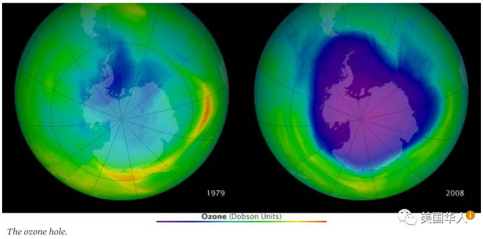 下面这张太空照片是不是挺酷的?不过如果你知道这是代表大气臭氧层在1979年到2008年之间的“伤疤”的时候(颜色越偏紫蓝说明臭氧层越稀薄甚至穿孔),咱们还乐得起来吗?