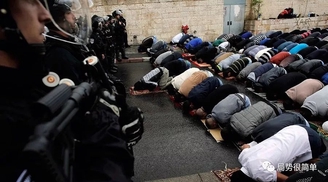 (面对以色列警察祈祷的巴勒斯坦人)