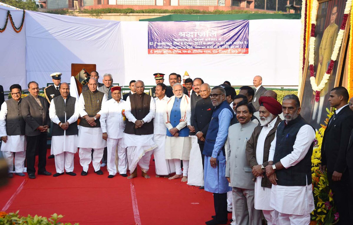当天是印度宪法之父安贝德卡尔逝世61周年纪念日。莫迪一早便参加纪念活动,瞻仰安贝德卡尔铜像,并献上花环。同时,莫迪也在推特上发布早前到孟买安贝德卡尔纪念馆的视频表达敬意。