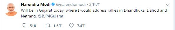印度时间十点,莫迪在推特上发布当天集会演讲活动的计划。受台风“奥奇”即将登陆的影响,莫迪今日的活动地点被选在古吉拉特邦靠东部内陆的三个城市。