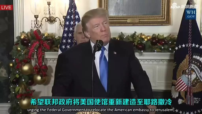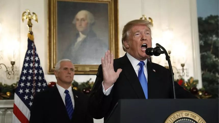 ▲ 当地时间12月6日,特朗普发表电话讲话,正式承认耶路撒冷为以色列的首都,并宣布美国驻以色列大使馆将从特拉维夫迁往耶路撒冷。