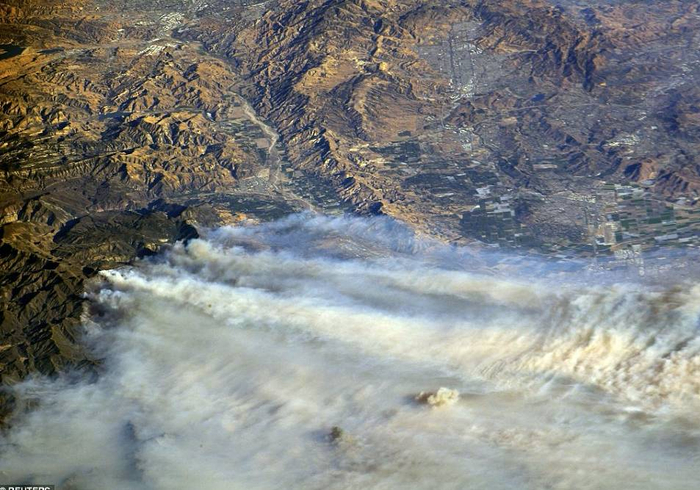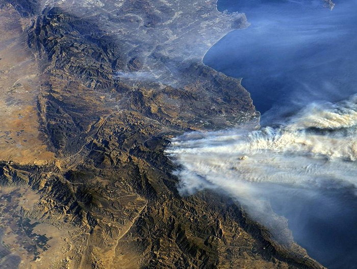 从国际空间站上俯视,整个南加州已被浓密的烟雾所笼罩。