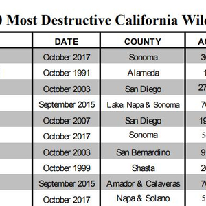 今年秋冬季节,加州山火频发。北加州10月中上旬遭遇严重山火,造成至少40人死亡,大约5700栋建筑物被毁。南加州的洛杉矶市9月初发生了该市有史以来最大的一场山火,一度威胁到1400户居民。