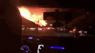 大火扑向人们逃离的公路,场面看起来就像好莱坞大片中的世界末日。。。