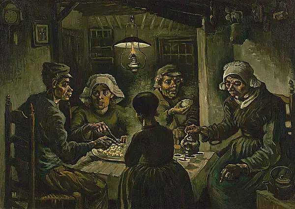 梵高第一幅油画是《吃土豆的人》。他为创作这幅画精神高度紧张,修修改改一个多月,满心期待能给弟弟提奥一个惊喜。