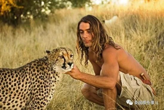 一头散乱狂野的长发,赤裸着健硕的上身,在山丘和草丛中和猎豹们肆意玩耍打闹…