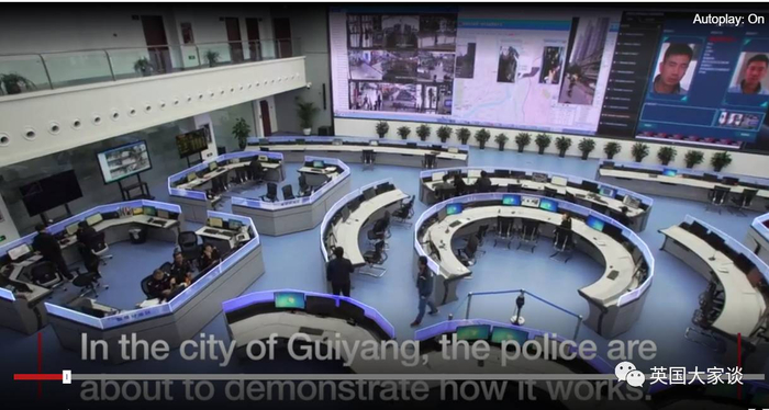 视频中,在贵阳警方的大厅里,约翰先见识到了强大的“天眼”系统,两层楼高的巨大屏幕上有各种分类信息和摄像头捕捉到图片,大厅里有多个部门、多台电脑一起合作,强大而高效。